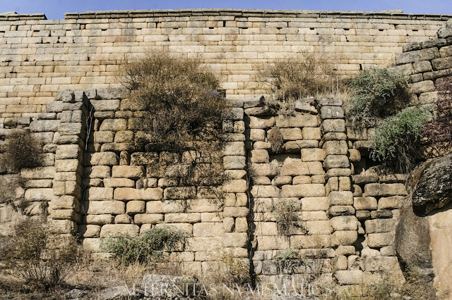 Foto 1 (arriba).- Terraza sostenida con paramento de sillería de época helenística. Foto 2 (abajo).- Vista general del Mercado de Alinda.
